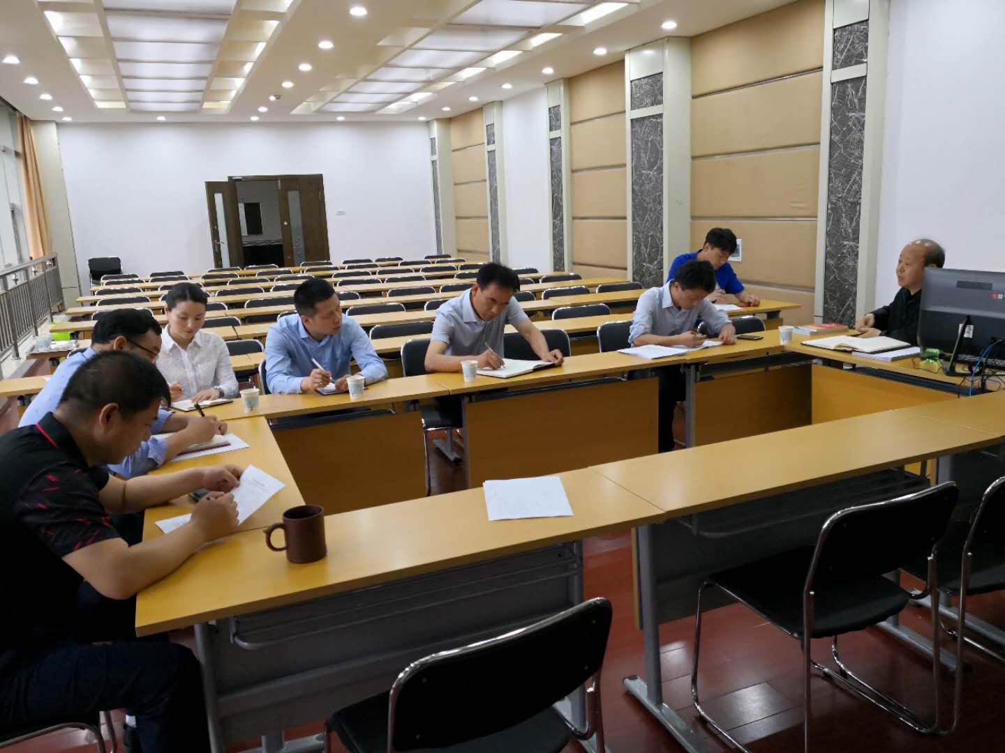机电学院负责人从办公室基本情况、工作特色、工作中面临的困难和问题,以及下一步的工作思路等几个方面做了发言。王斌书记提到办公室经费配套相对落后,尤其是学科竞赛经费安排和耗材等问题。田华副院长建议机电学院分系部、分教学科进行管理,按照学校要求上交教学材料,避免混乱。