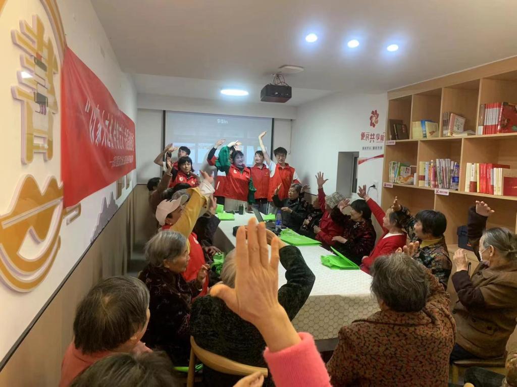 随后来到新建社区安源红邻里之家,携手萍乡“爱与陪伴”公益开展关爱高龄独居老人活动,为居民进行智慧助老、反电诈政策解读等学雷锋志愿服务活动。本次活动的主题为“以家人之名,伴您左右”。活动现场,志愿者们与亲切地老人们拉家常,聆听他们的心声并了解他们生活当中有无实际困难,带领老人们积极地参与手语歌曲的表演,为独居老人们带来温暖的陪伴与问候。社区居民对此次活动给予了极高的评价。