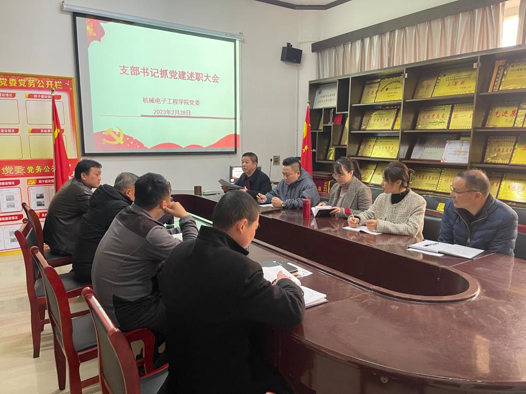 2023年2月28日下午,机电学院在党员活动室召开2022年度党支部书记抓基层党建述职大会。会议由学院党委书记王斌主持,学院领导班子、党委委员、各党支部书记参加了会议。