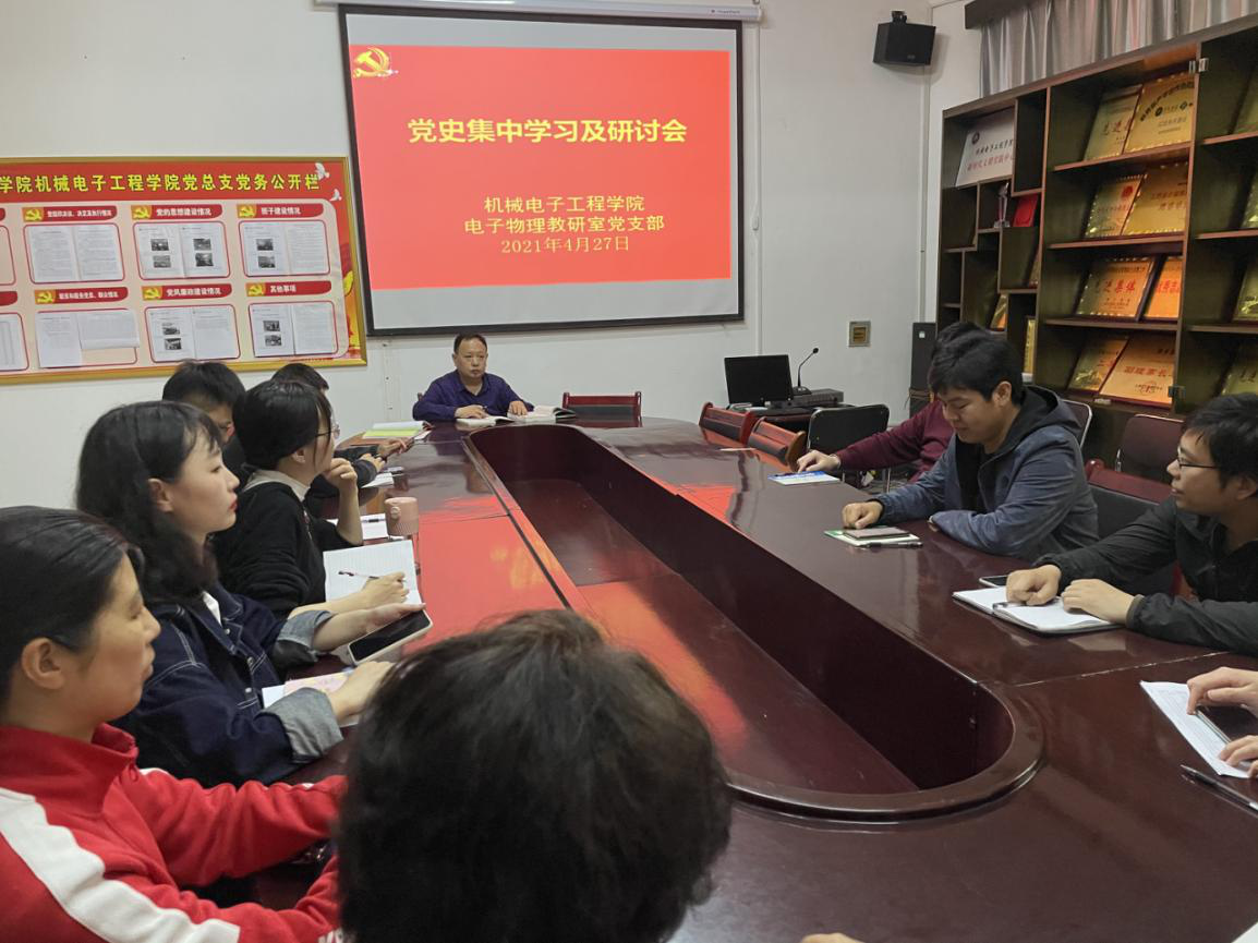 为深入贯彻落实习近平总书记在党史学习教育动员大会上的重要讲话精神,扎实推进“学党史、强信念、跟党走”主题教育活动,坚定理想信念,强化使命担当。2021年4月27日,永利集团88304官网集团电子物理教研室党支部组织党员召开党史集中学习及交流研讨会。