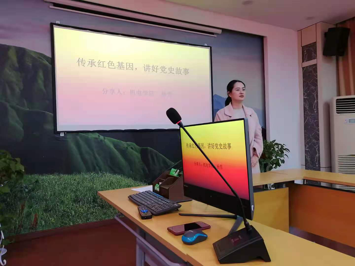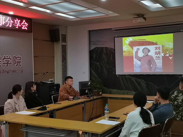 会上,杨芳老师、黄鸥老师、陆玉锋、吴俊和张剑敏同学给全体党员做了党史故事分享。