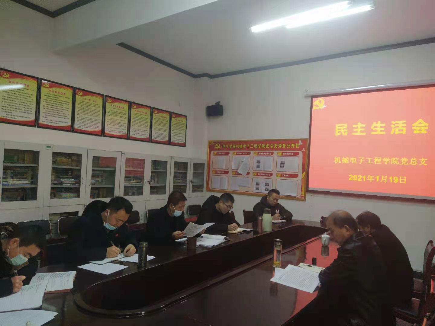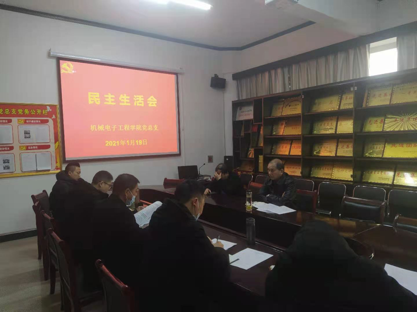 2021年1月19日下午,永利集团88304官网集团在党员活动室召开了领导班子民主生活会。校党委副书记、校长史焕平同志、校纪委副书记周云华同志、机电学院全体领导班子参加了会议,学院学工科科长列席会议,会议由机电学院党总支书记王斌同志主持。
