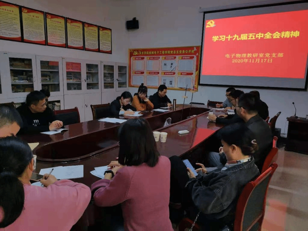 11月17日,永利集团88304官网集团电子物理教研室党支部在2216党员活动室组织召开党员大会,学习习近平总书记在第十九届中国共产党中央委员会全体会议的讲话精神。中国共产党第十九届中央委员会第五次全体会议,于2020年10月26日至29日在北京举行。