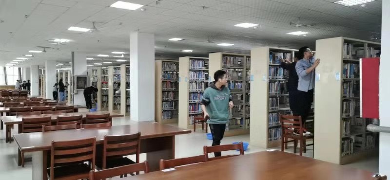 同学们在图书馆老师和班级辅导员的带领下,听取了任务分配,随后分别对图书馆的1楼、3楼、5楼和6楼部分图书储藏室进行了清扫,同学们分工明确,各自负责好自己的部分,例如:书架、窗台和桌凳等。在整个清扫过程中,同学们积极主动,遇到无法处理的地方询问老师,有序进行。他们发扬不怕苦、不怕累的精神,认真地对图书进行归类整理并仔细地将书架上的灰尘拭去,彼此之间相互配合,默契十足。同学们的工作也得到了图书馆相关老师的一致认可。