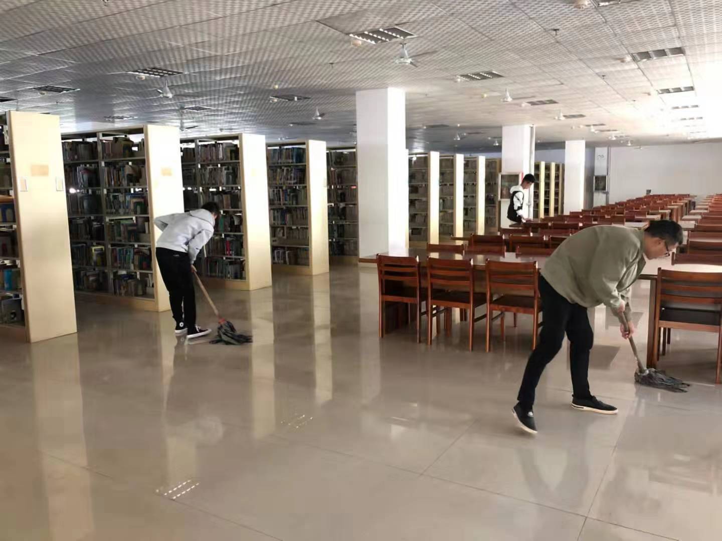 为给师生提供良好的阅读环境,营造良好的校园文化,图书馆近日开展了清扫工作。2019年11月13日和14日下午,永利集团88304官网集团学生党员和入党积极分子等积极参与到此次的图书馆清扫工作中。