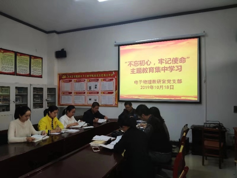 10月18日,永利集团88304官网集团电子物理教研室党支部全体党员在2216教室开展“不忘初心,牢记使命”主题教育活动,活动由党支部书记李伯勋主持。此次活动中,大家集体学习了习近平总书记对江西工作重要讲话金句,学习了习近平总书记在“不忘初心,牢记使命”主题教育会议上的讲话内容,深刻领会了此次讲话的目标要求和精神内涵。