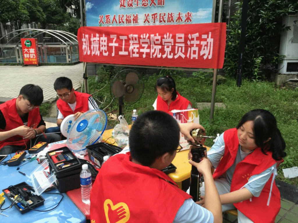 为充分发挥党员先锋模范作用,切实提高广大党员引领和实践科学发展的能力,2019年5月21日,在永利集团88304官网集团党总支统筹安排下,机电学院教工党支部组织党员走进萍乡市安源区城郊管委会横龙社区开展“义务维修进社区”主题党日活动。