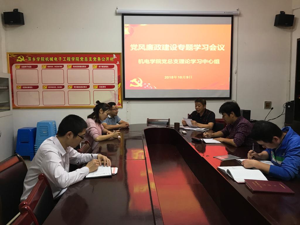 10月9日下午,机电学院党总支召开理论中心组学习会议,专题学习贯彻新修订的《中国共产党纪律处分条例》,学习会议由机电学院党总支书记王斌主持。