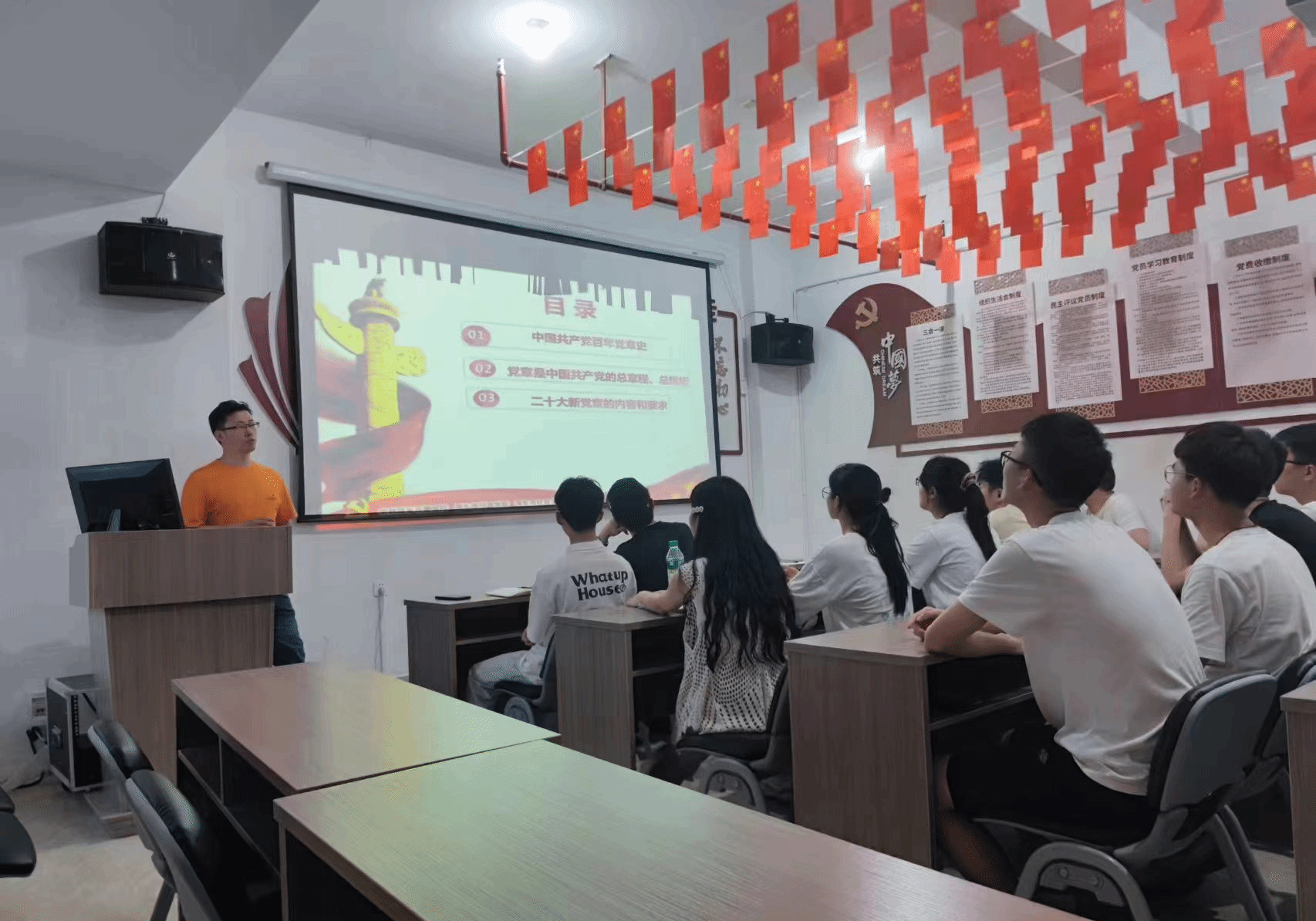 2023年6月5日晚上19:00,永利集团88304官网集团辅导员张陆老师在18栋“红管家”154教室带领机电学院第一学生党支部30余位学生入党积极分子共同学习了《学习践行党章,争做合格党员》。
