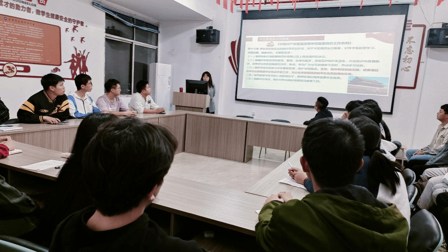 会上,占书记首先向大家解读了《中国共产党组织工作条例》、《中国共产党普通高等学校基层组织工作条例》、《中国共产主义青年团支部工作条例(试行)》、《中国共产主义青年团普通高等学校基层组织工作条例(试行)》中,有关党支部、学生党支部、团组织与学生团支部的功能与职责,以及《条例》中有关党支部与团支部的工作关联内容,让团支书对自己的工作任务与职责,以及对接党支部的相关工作任务与要求,有更清晰的把握。