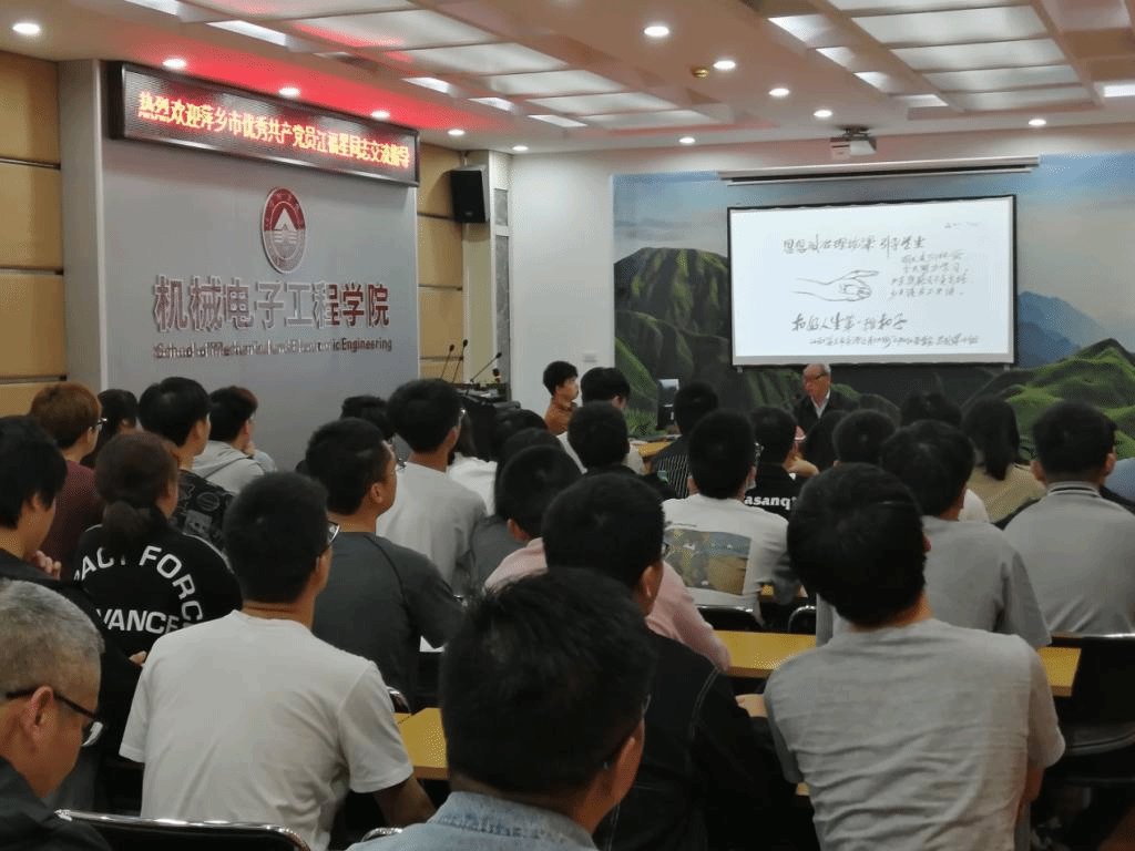 江福星同志拥有61年党龄,是安源区丹江街机关退休干部党支部书记、萍乡市优秀共产党员、萍乡市最美退休老干部。江福星同志从自己的入党初心谈起,与同学们分享了自己61年党龄中的收获与体会。几十年来,听党话,好好干,一直在基层一线工作、学习和生活,主要收获和体会是“三个三”,即手握“三个头”(手握自行车头、手握笔头、手握锄头);获得“三个100”(获得100多本荣誉证书、公开发表100多篇建言献策文章、积累了100多个酸甜苦辣的故事);健康体魄保持“三个零”( 病假天数为零、住院天数为零、批条报销医药费为零)。江福星同志用自己的实际行动彰显了党员本色,用一组组数字诠释了对党的忠诚。