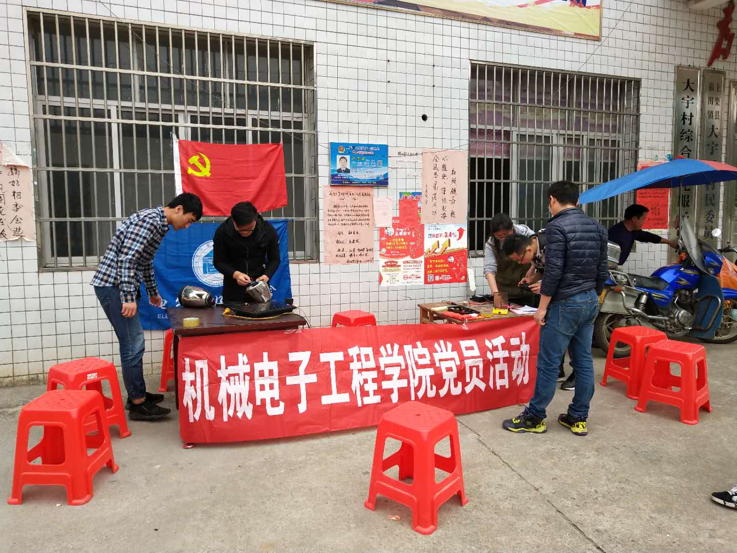 2018年3月30日,一支由教工、学生党员及入党积极分子组成的家电义务维修小分队,在永利集团88304官网集团党总支的带领下来到了上栗县福田镇大宇村,开展了下乡志愿服务主题党日活动。此次活动旨在发扬机电学院 “团结务实,学以致用”的宗旨,利用专业优势,开展义务维修活动。