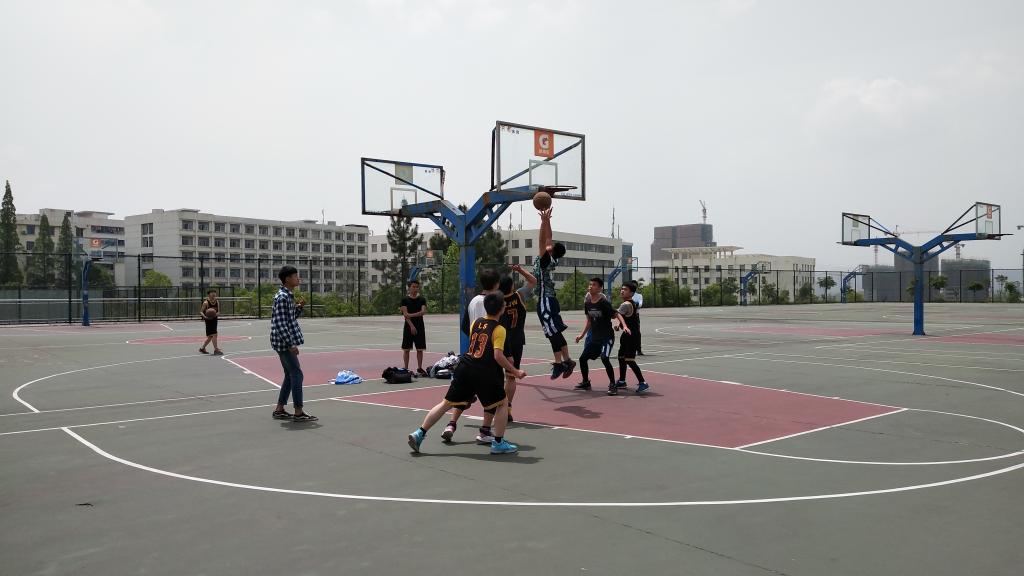 2018年4月15日傍晚,机电学院班级篮球友谊赛在篮球场上继续精彩上演。此次比赛对战双方是17电信班和16机设班。