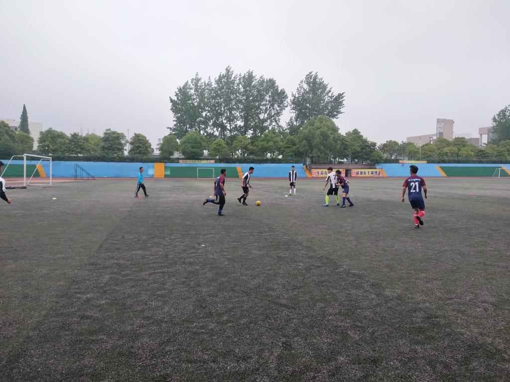 2018年5月7日中午,机电学院与体育学院在田径场上举行了一场激烈的足球友谊赛。