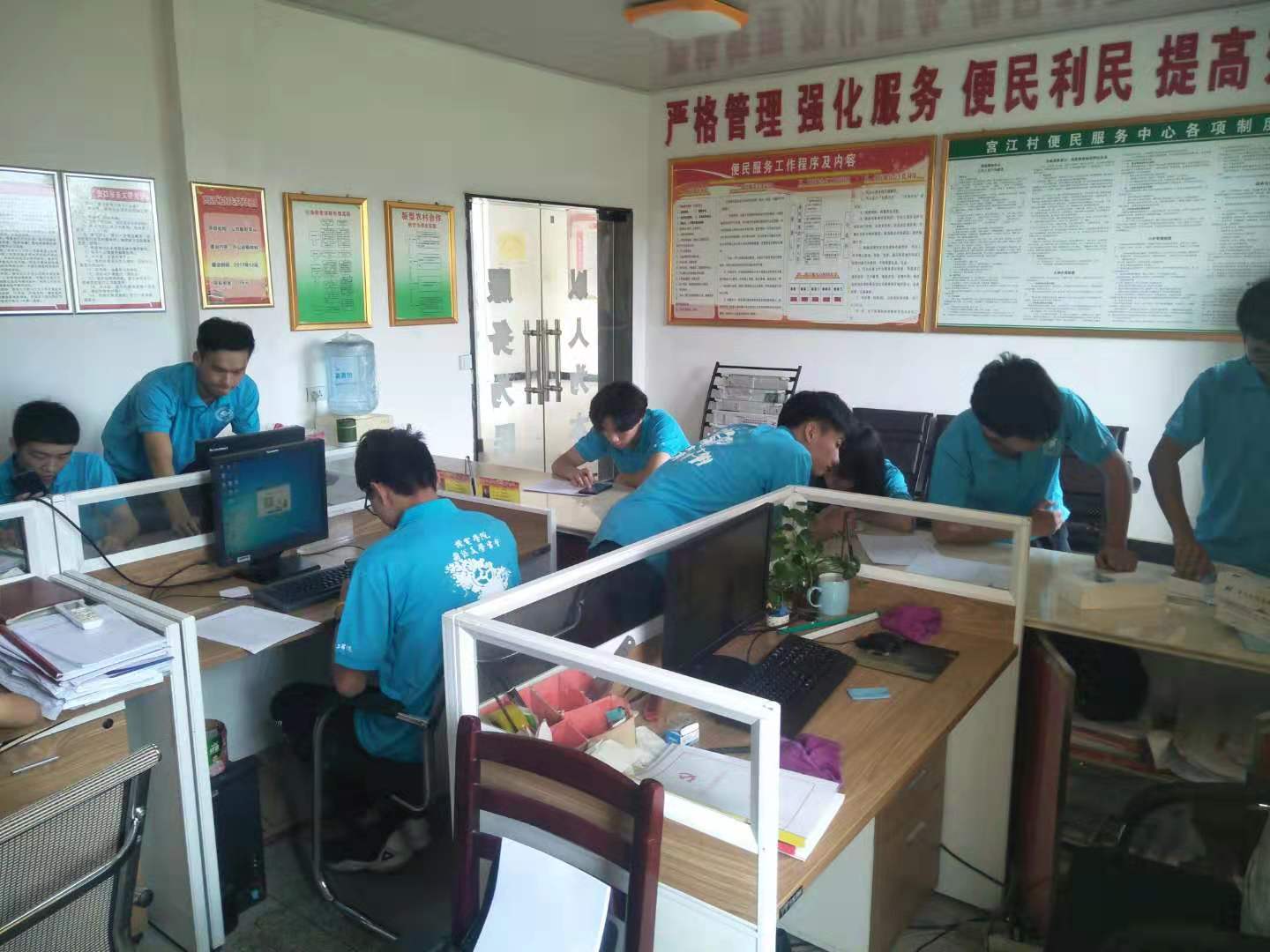 下午,在村委会负责人的安排下,走上各自的工作岗位。在工作过程中,每一个人都极其认真地对待自己的工作,为村委会尽自己的一份力。