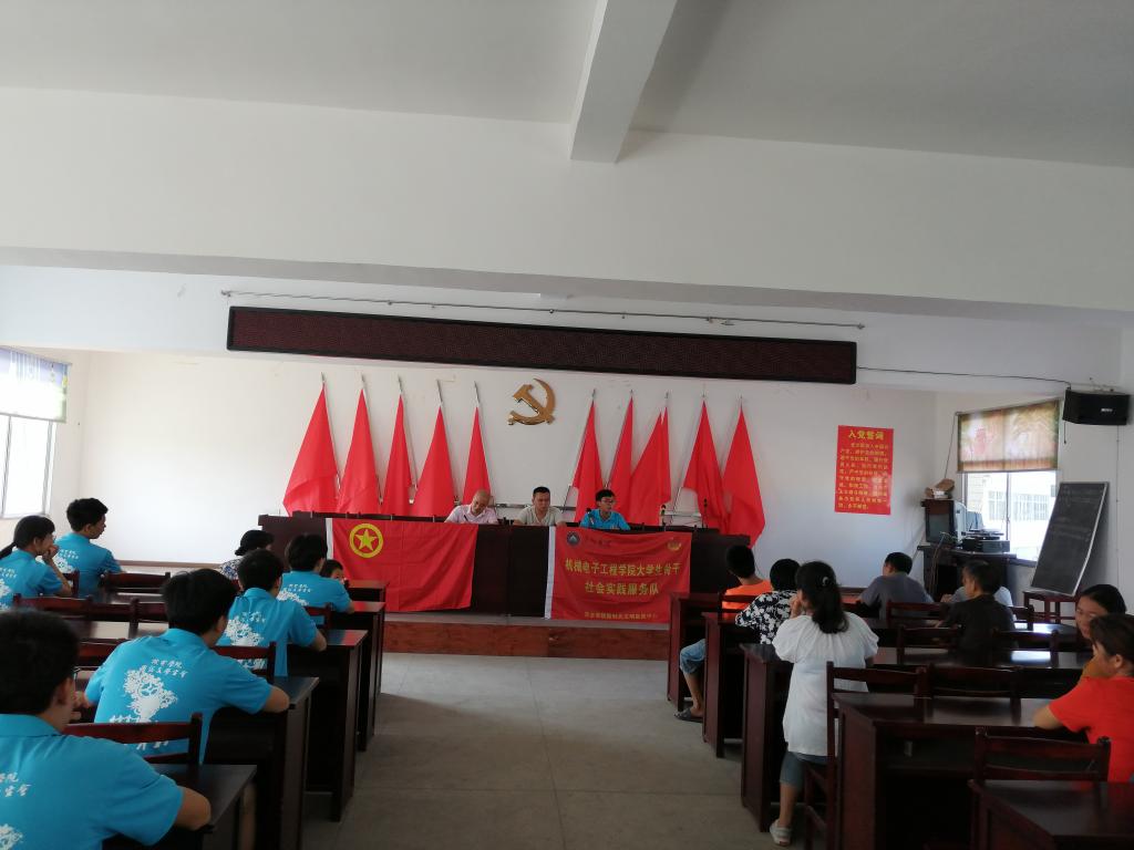 2019年7月19日,永利集团88304官网集团大学生暑期三下乡社会实践团队在宫江村开展脱贫宣讲活动,宣讲主题是习近平新时代中国特色社会主义思想和党的十九大精神。此次宣讲活动由学院学生分会团总支副书记冷强鑫主持开展。出席本次会议的有驻村第一书记邱书记、何主任及学生会骨干成员和宫江村贫困村民。