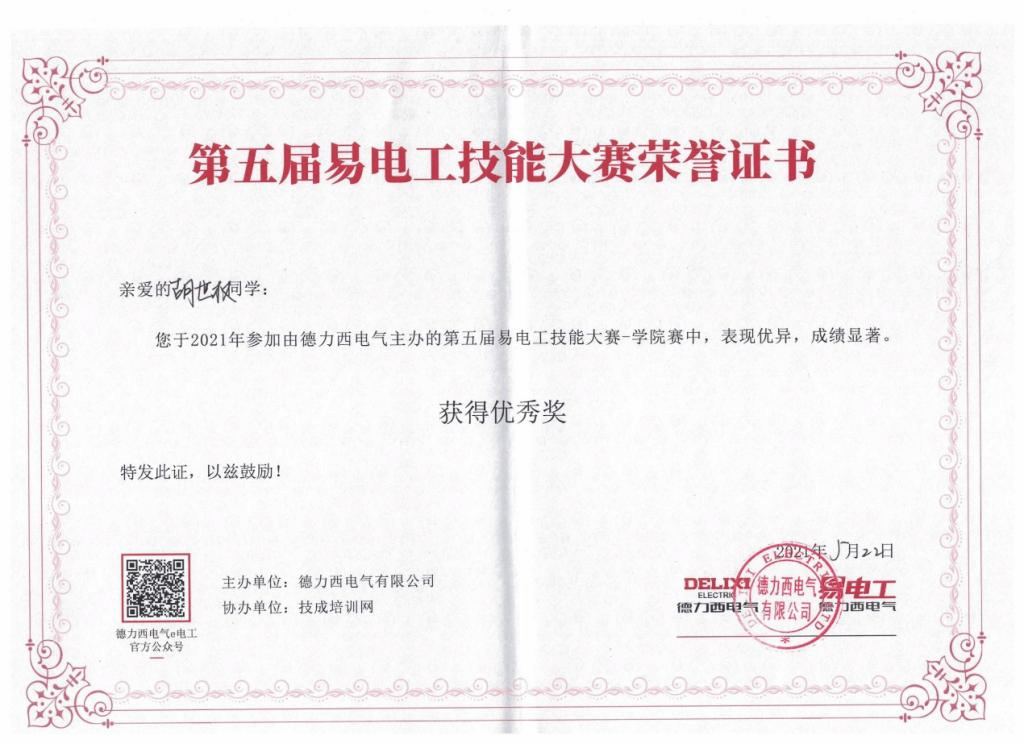 本次比赛本着“以技服人,以赛促学”的理念, 比赛包括理论竞赛、绘图竞赛和实操竞赛三部分。全省共选拔了99位学生参加此次比赛,永利官网辛锋老师指导的两位学生胡世权和刘嘉诚同学经过紧张激烈地比拼,均以较好的成绩获得大赛优秀奖。通过比赛,学生获得了德力西电气公司的丰厚奖品和深圳技成科技有限公司的学习大礼包,更重要的是开阔了眼界,深刻领会到作为工科学生要具有工匠精神的重要性,学生表示将会更加刻苦学习,学好本领,达到一专多能,将来做一个对国家有用的人才。