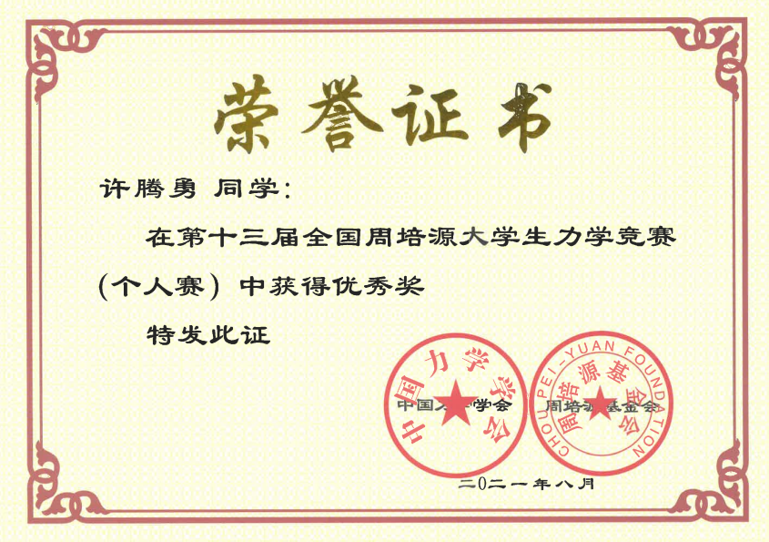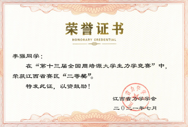 2021年5月23日,永利集团88304官网集团机电学院18和19级机设和机电两个专业共6名同学,在指导老师的带领下代表永利集团88304官网集团参加了在南昌举行的第十三届全国周培源大学生力学竞赛江西赛区的比赛,最终两名同学荣获江西省赛区二等奖暨国家级优秀奖(个人赛)项。