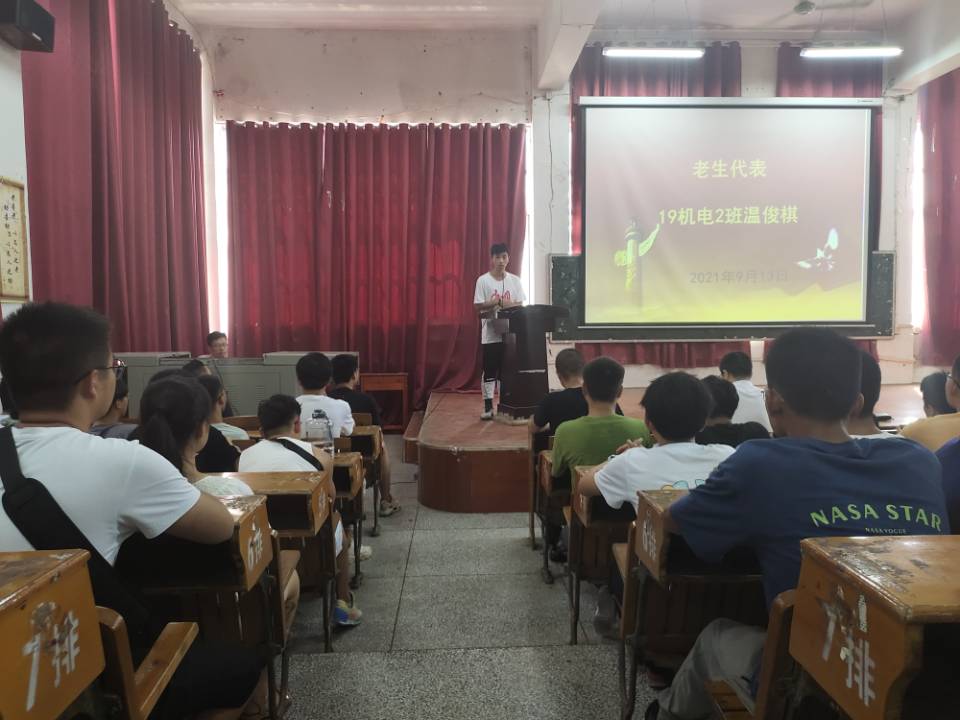 首先,学院党总支书记王斌代表学院向2021级新生的到来表示最热烈的欢迎,并介绍了学校和机电学院的办学历史及详细情况。他对新生们提出了三点要求与希望:一是要树立理想,坚定信念;二是要刻苦学习,发奋成才;三是要锻炼品德,提高修养。他衷心希望各位同学遵循“厚德至善、励学笃行”的校训,珍惜学习机会,坚定理想信念,追求卓越,勇攀高峰。
