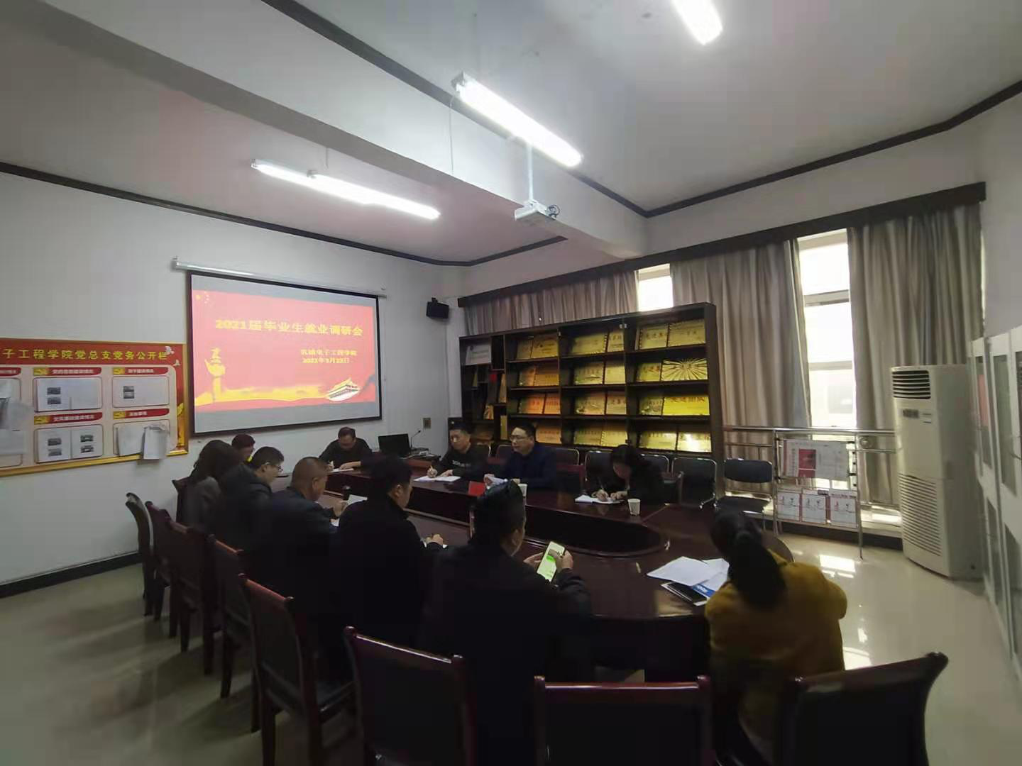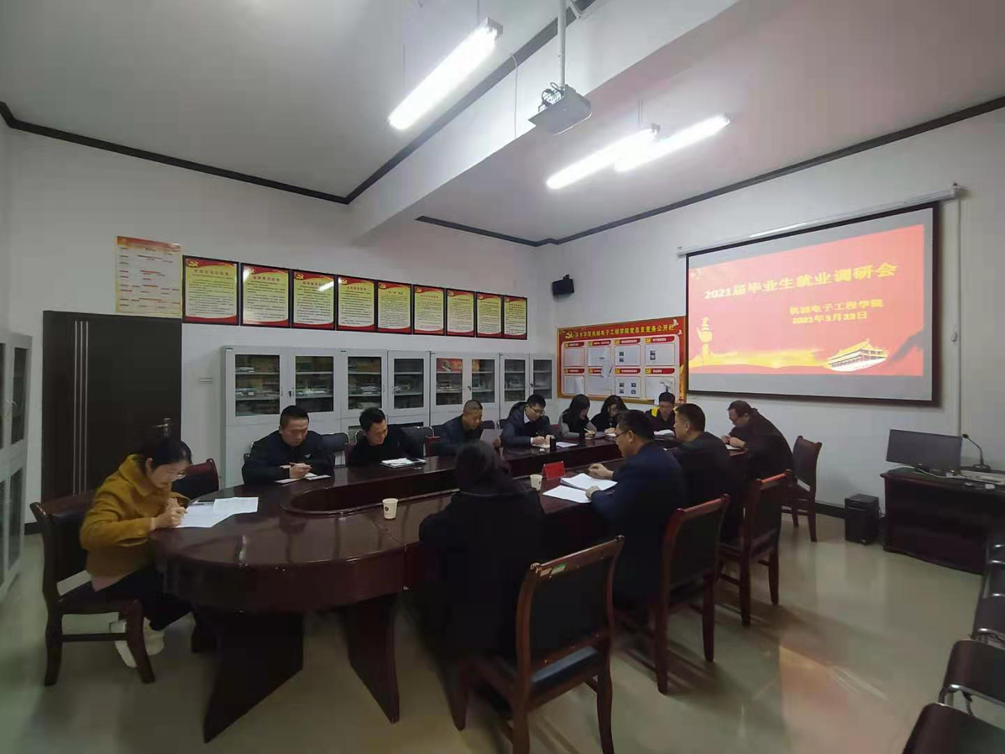 2021年3月23日下午,永利集团88304官网集团副校长邱建丁到机电学院开展2021届毕业生就业工作调研与指导,机电学院党总支书记王斌、院长田春来、副院长李涛涛、就业干事童乐以及2021届毕业班班主任参加了会议。