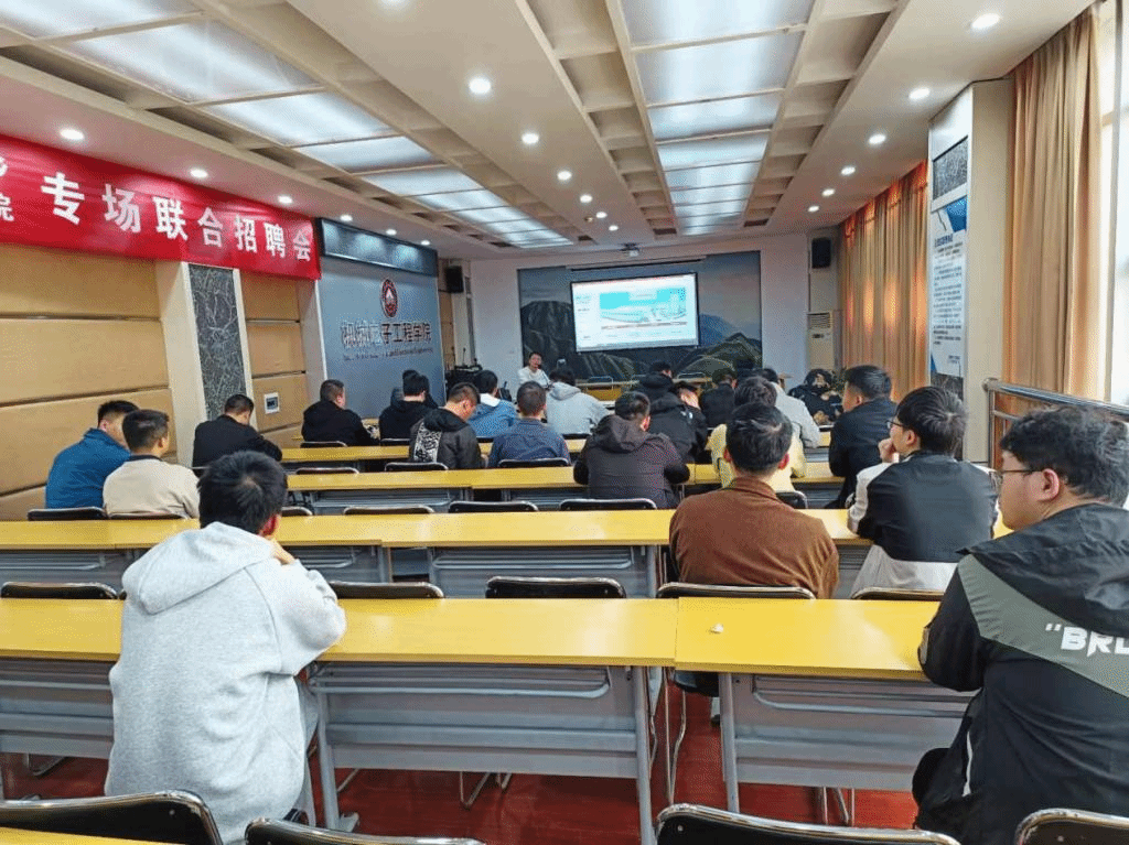 在招聘会现场,邓经理播放了企业宣传片,详细介绍了公司的发展历史和发展前景,对学生提出的疑问一一做了解答,本次招聘会主要招收销售岗,邓经理对有兴趣的学生进行了现场面试。