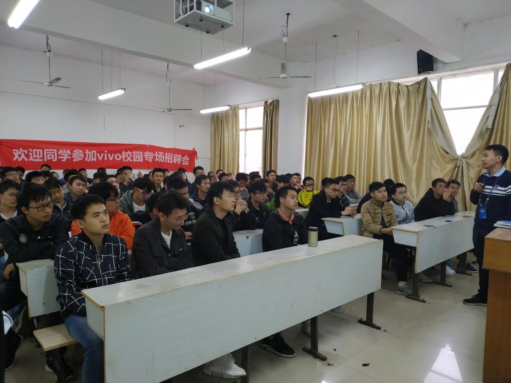 2018年11月6日14时,机电学院在2216教室举办了vivo移动通信有限公司校园专场招聘会。2019届毕业生近200人参加了招聘会。
