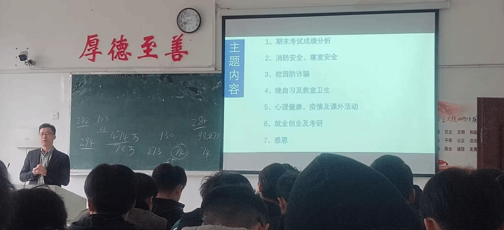 开学第一次安全教育——21电信1班张小龙老师围绕“宿舍安全、饮食安全、交通安全、心理健康、防诈骗、防溺水、防火灾”等方面,结合实际案例展开讲解。要求学生全员下载使用国家反诈中心APP,切实提高防诈骗意识。
