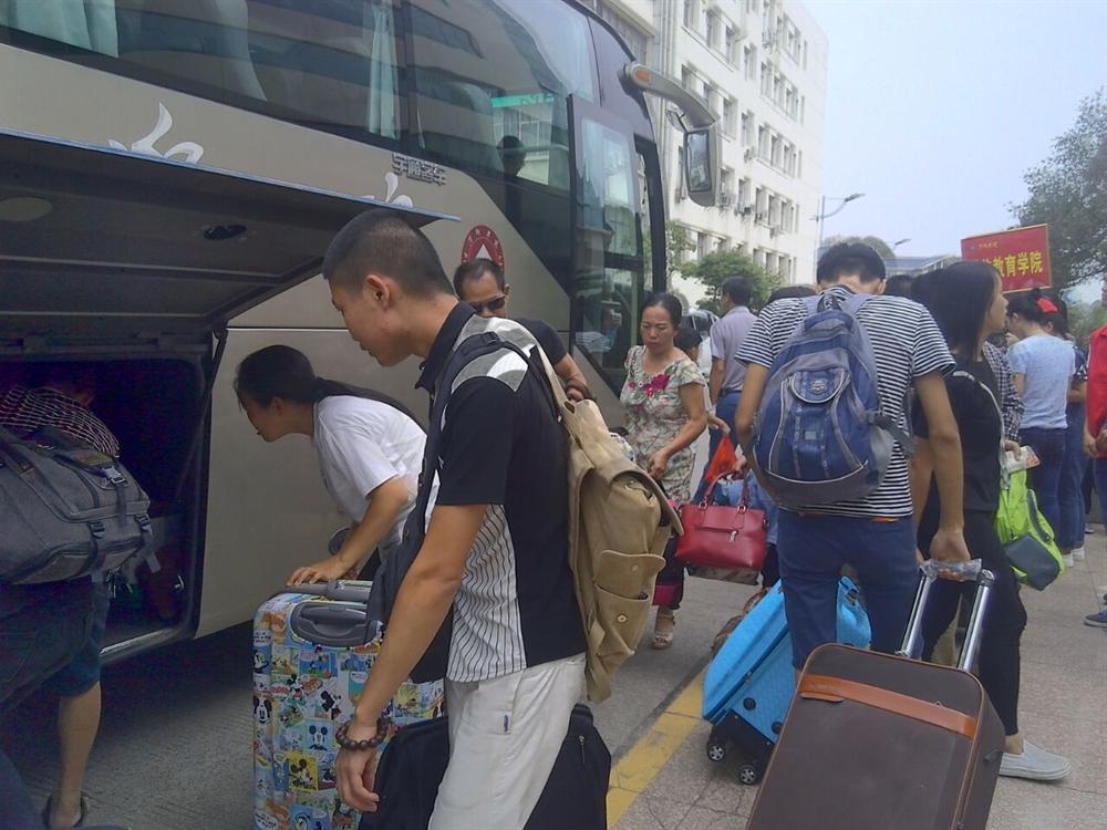 今天是机电学院正式迎新的第一天,图书馆门前我们的机电学院团总支学生分会的干事在举着我们学院的牌子迎接着刚刚下校车的新生,引领他们去办领入学手续,带他们参观校园,帮助其购买生活用品!