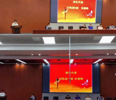 学生代表朱慧琳、杜春辉先后代表老生和新生发言。朱慧琳同学分享了自己的大学成长历程和学习经验,对老师的谆谆教诲、学院为其提供的学习平台表达了感谢,并鼓励学弟学妹们要制定目标学习计划和生涯规划。杜春辉同学在发言中难掩激动之情,表达了这几天入学的感受,并代表全体新同学郑重承诺:一定恪守“厚德至善励学笃行”的校训,严守校纪校规,勤奋刻苦学习,用奋斗铸造明日的辉煌。