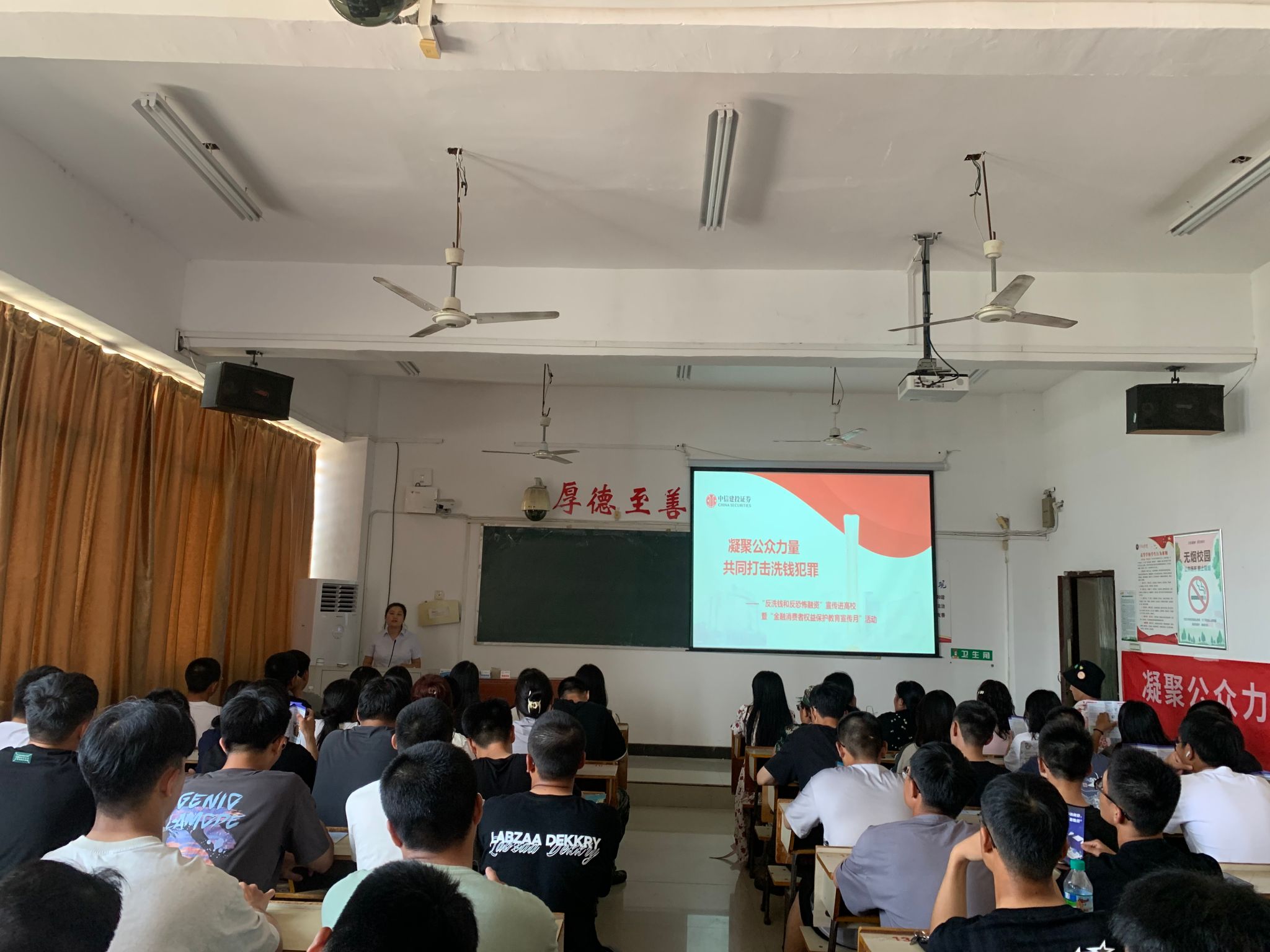 此次宣传活动分为校园内设置现场宣传服务点和开展专题讲座两个环节。在校内宣传服务点,设立了咨询台,悬挂了宣传横幅,中信建投证券公司的工作人员向学生分发反洗钱宣传手册并普及反洗钱和反恐怖融资知识,同时耐心为学生解答相关问题,提醒同学们要保护好自己的身份信息,不要出借出售自己的银行卡,避免被不法分子利用,自觉远离洗钱风险。随后,中信建投证券萍乡分公司的合规管理员杨姣为2023级新生开展“凝聚公众力量,共同打击洗钱犯罪”专题知识讲座。讲座包含反洗钱基本知识概念、典型非法金融活动表现形式及案例、大学生日常“防非”注意事项等内容。杨姣从反洗钱知识与高校大学生的关系导入讲座,通过讲解反洗钱的概念,以生动具体案例剖析了网贷、刷单返利、套路贷、银行卡盗刷等多种非法金融活动的特征,警醒广大学生应重视学习反洗钱相关知识,同时也应提升防范各类诈骗的能力,如未知链接不点击、陌生来电不轻信、个人信息不透露等,日常生活中也应养成正确的消费观,不过度消费,从而做到保护自己,远离侵害,识别陷阱,远离犯罪。