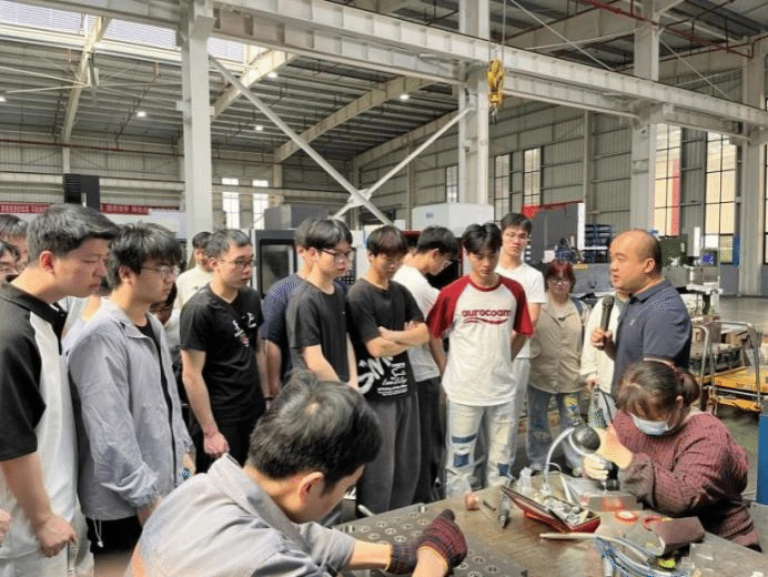 在学生现场学习过程中,校方指导教师还与企业技术人员展开了深入交流与研讨,进一步交流思考如何将企业的实际需求与实践经验融入到课程建设之中。通过校企合作,学校能够更优地调整课程设置,使教学内容紧密贴近工厂,从而培养出契合企业需求的高素质专业人才。企业也表明,十分欢迎学校师生的到来,愿意为课程建设与合作教学提供更多的资源与支持。这样的合作不仅有益于学校应用型人才培养,也可以为企业未来的技术人才储备筑牢根基。