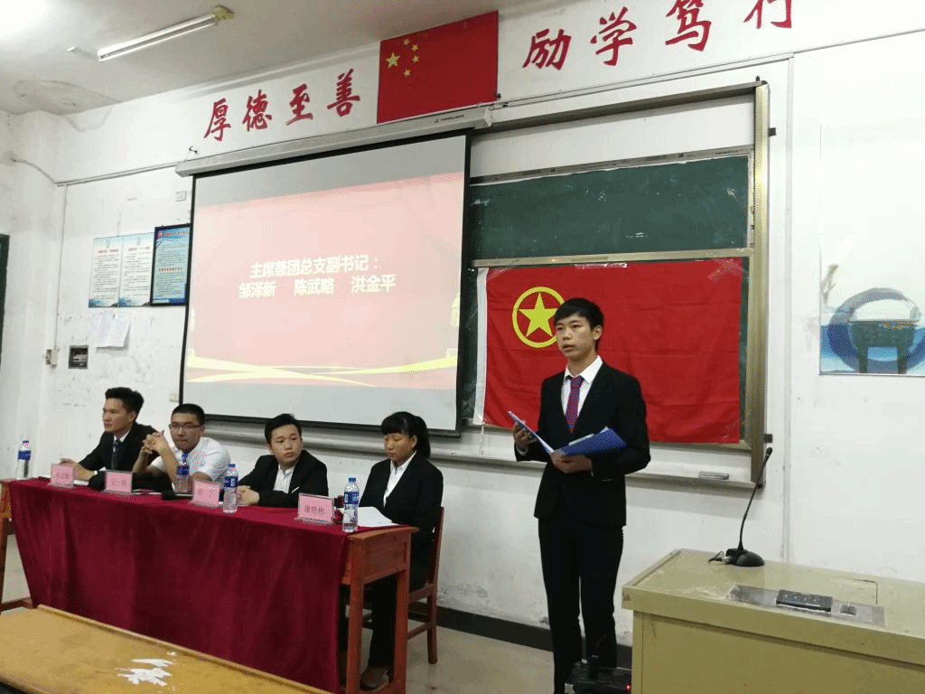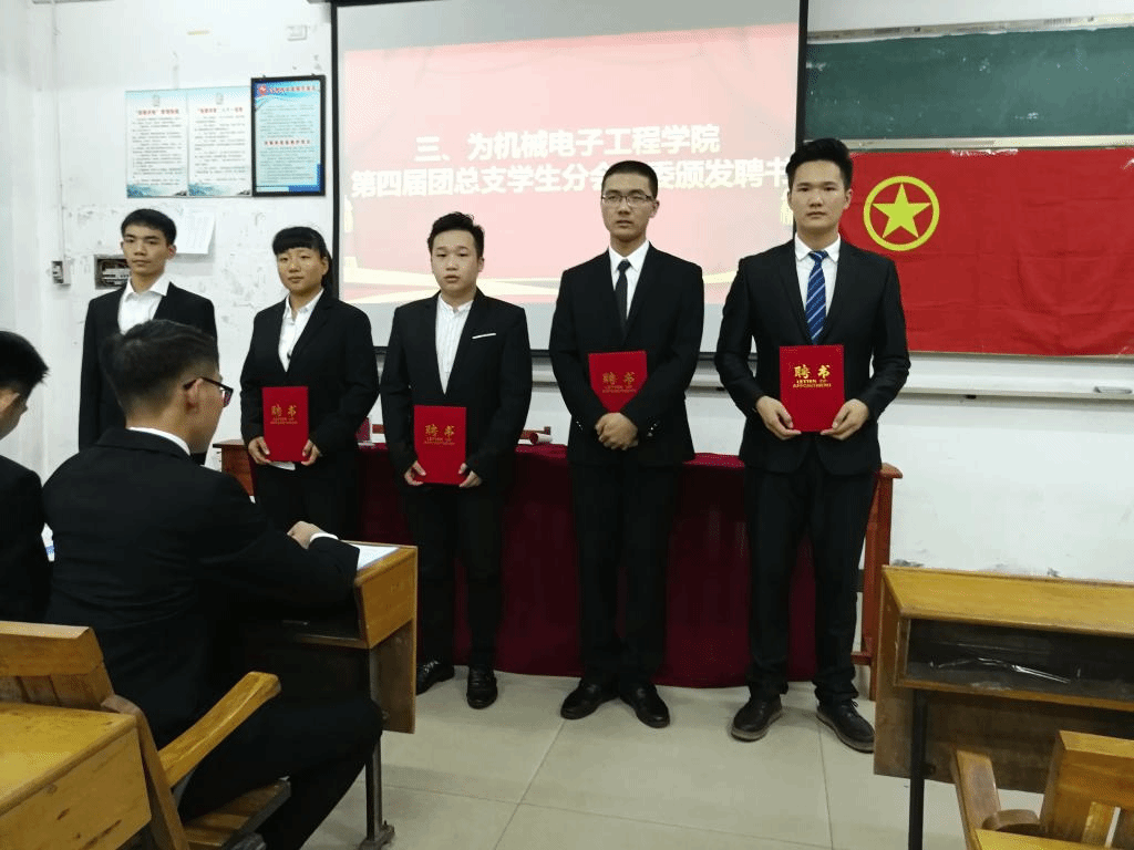 大会第一项全体起立奏唱国歌。大会第二项由机电学院团总支书记童乐老师致开幕词,童老师高度赞扬了机电学院学生会的工作,期望新一届学生会能够薪火相传,继承优良传统,加强责任意识与服务意识,促进学生会不断地完善与发展。大会第三项由组织部部长张海东为第四届团总支学生分会执委颁发聘书。大会第四项由机电学院团总支学生分会主席王凯宣读第四届团总支生分会工作报告,概括了在过去的一年里学生会取得的优异成绩,讲述了对学生会未来的改革与期望。大会第五项由新任学生会主席邹泽新、团总支副书记李乔辉、部长代表及干事代表发言,皆表达了团结一心为学生服务的意愿。他们还表示进入学生会,是挑战与机遇并存的,要迎接挑战,抓住机遇,不断地提高自己。至此,机电学院2018年学生会换届大会圆满结束。
