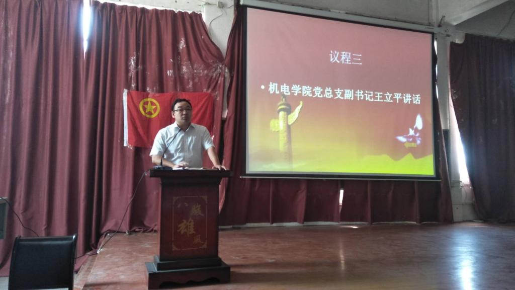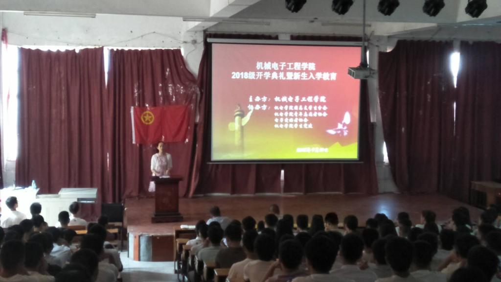 王斌书记对全体新生的入学表示祝贺和欢迎,介绍了机电学院近年来的学生工作、社团工作。同时对新生们提出了殷切的期盼,希望大家树立远大理想、勤于学习实践,切实做到爱国、励志、求真、力行,用激情和汗水书写青春华章。