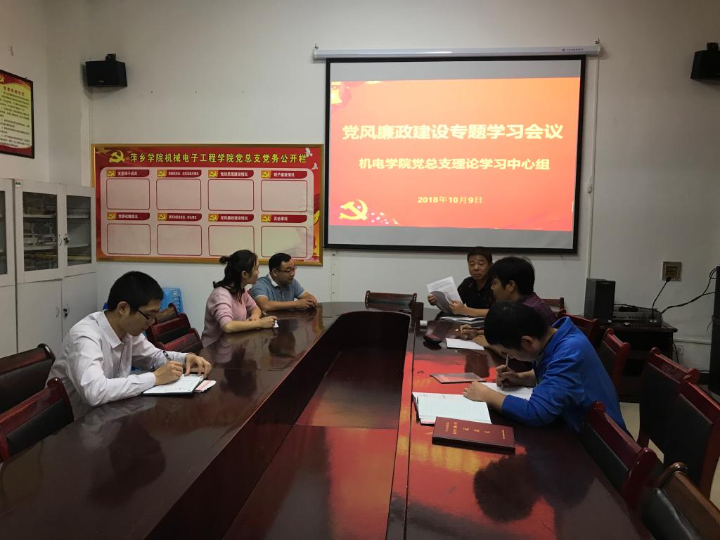 10月9日下午,机电学院党总支召开理论中心组学习会议,专题学习贯彻新修订的《中国共产党纪律处分条例》,学习会议由机电学院党总支书记王斌主持。