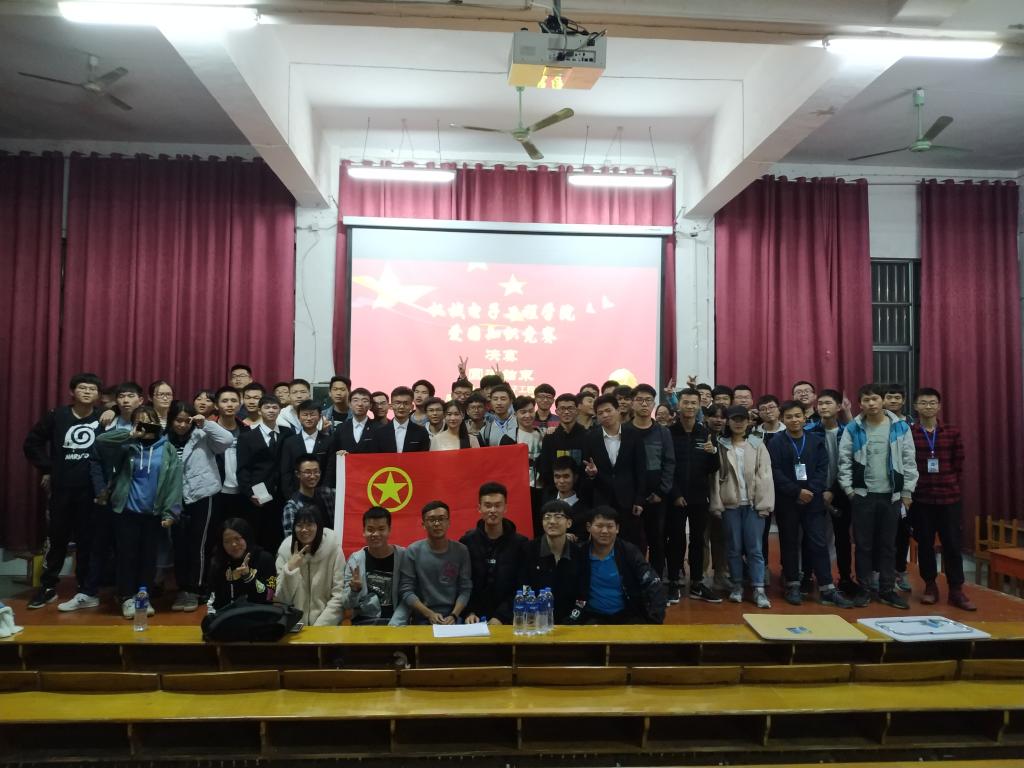 2018年11月26日晚7点整,机电学院于跬步楼1115教室举办爱国知识竞赛决赛,出席本次活动的嘉宾有机电学院18级辅导员、18级各班班主任及团总支学生分会执委团。18级全体机电学生观看比赛。