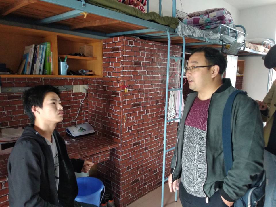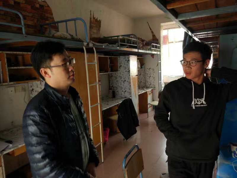 进入寝室后,领导、老师们亲切的和寝室里的同学打招呼,向寝室里的同学询问有腹泻症状的同学身体状况,并为有不舒服的同学提出:去学校医务处领取药物,多喝开水,注意保暖,寝室要按时用消毒水消毒等等切实建议。走访了多个宿舍,大部分宿舍地面卫生干净,东西摆放整齐有序,学院领导老师表示很是欣慰,同时也督促各寝室继续坚持每天消毒,杜绝安全隐患。