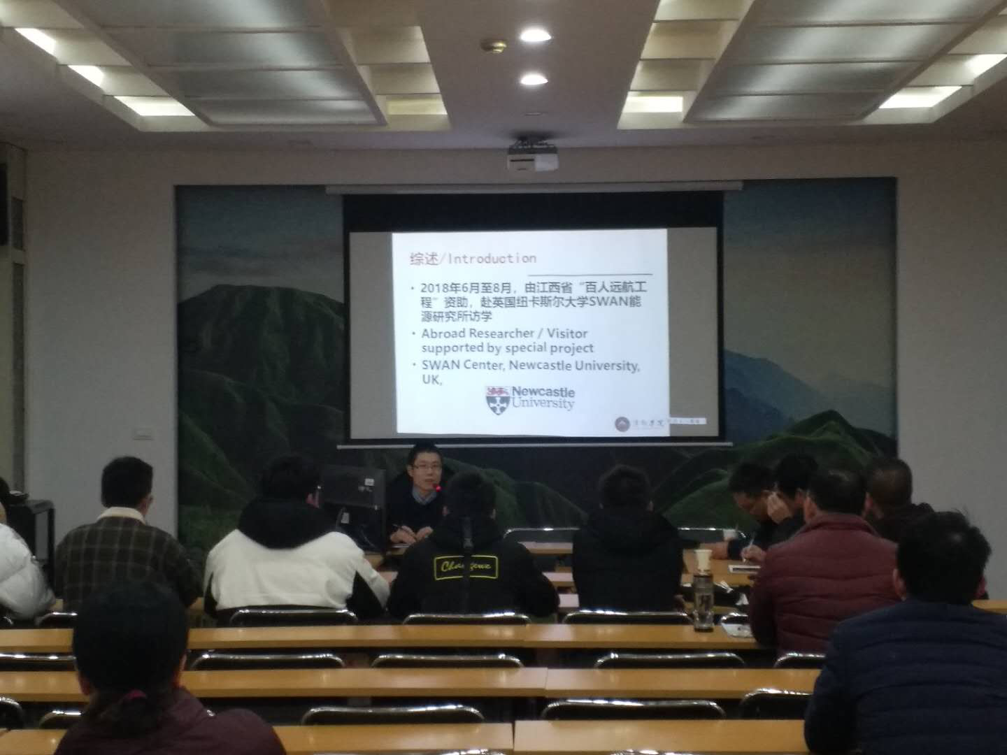 田春来副院长主要针对入选江西省百人远航工程计划项目,于2018年6月-2018年8月赴英国纽卡斯大学就超重力环保装备开展短期访学进行工作汇报。