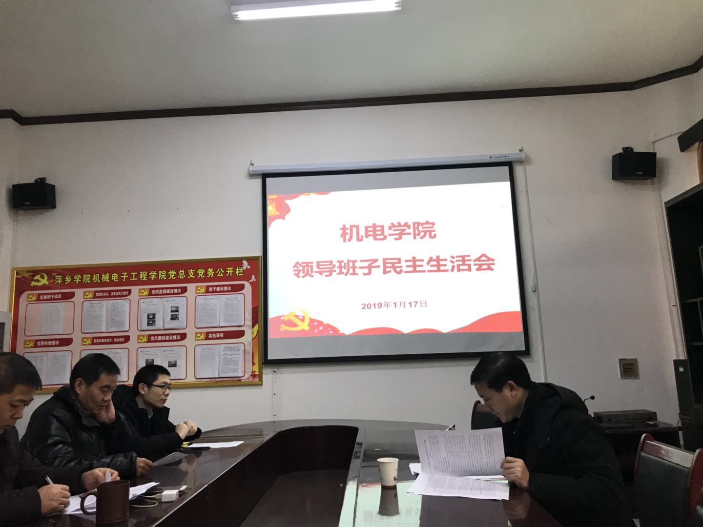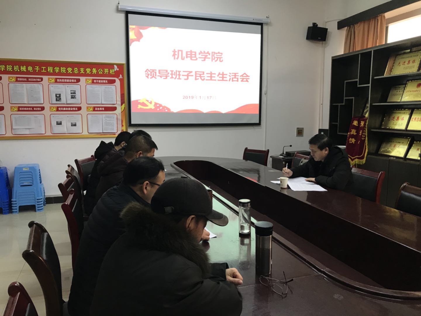 2019年1月17日,永利集团88304官网集团在党员活动室召开了领导班子民主生活会。校党委委员、宣传部部长陈永国同志、机电学院班子成员、支委成员参加了会议,会议由党总支书记王斌同志主持。