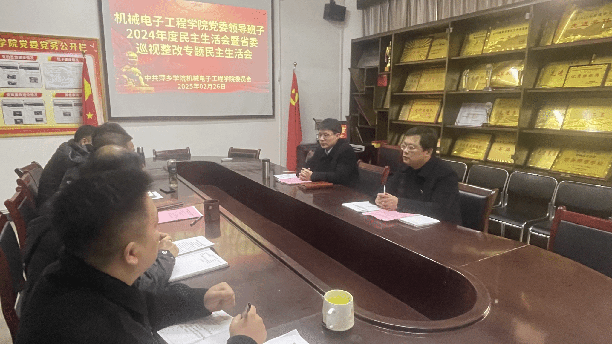会上,王斌通报了本次民主生活会会议准备情况及上一年度民主生活会存在问题整改落实情况,并代表领导班子作对照检查,结合典型案例深入剖析问题根源,结合学院实际,提出了整改措施和努力方向。随后,领导班子成员逐一对照本次民主生活会的主题要求查找差距和不足,结合典型案例,严肃认真地开展了批评与自我批评。