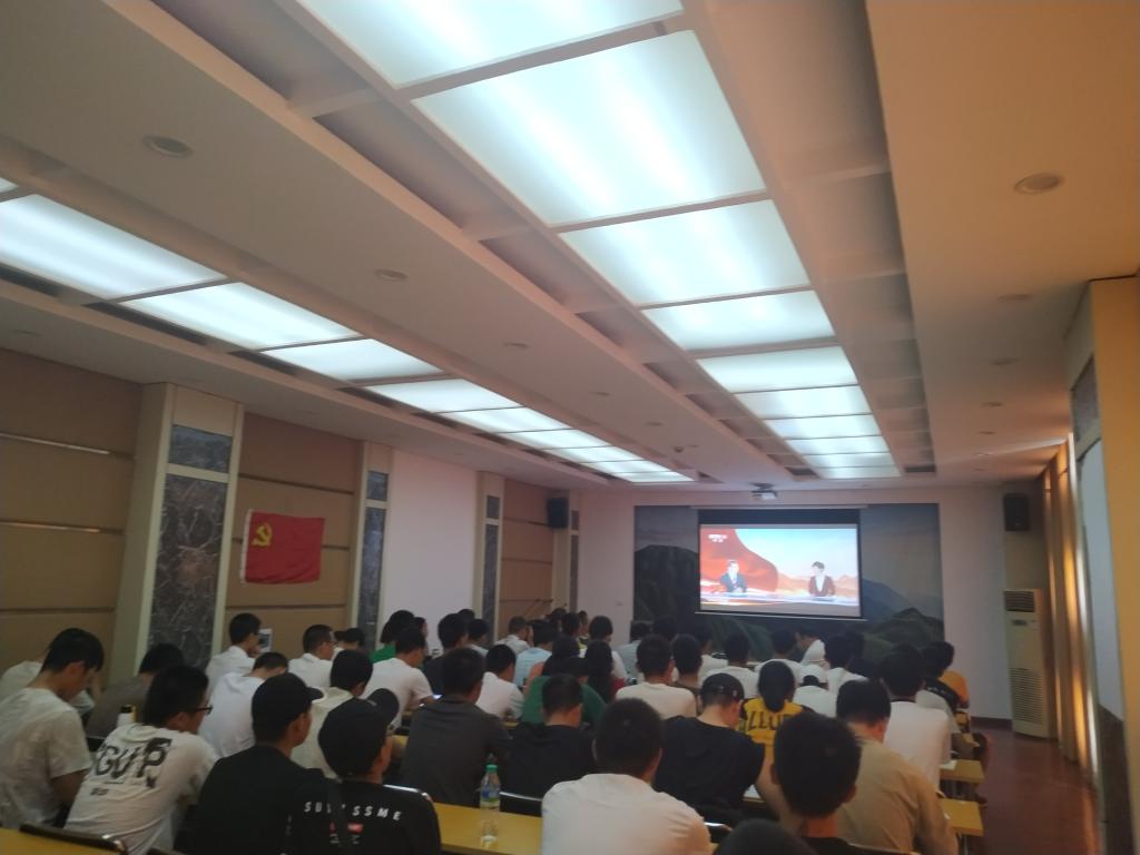 上午8点半,直播尚未开始,会议室、教室就坐满了人,大家都将收看阅兵式作为一堂积极生动的党课,能接受一次党性再教育。收看阅兵式时,现场氛围热烈,师生们坐姿严整,仔细聆听,认真记录习近平总书记的重要讲话。当习近平总书记铿锵有力、掷地有声的说到“没有任何力量能够撼动我们伟大祖国的地位,没有任何力量能够阻挡中国人民和中华民族的前进步伐!”时,全场报以热烈掌声。