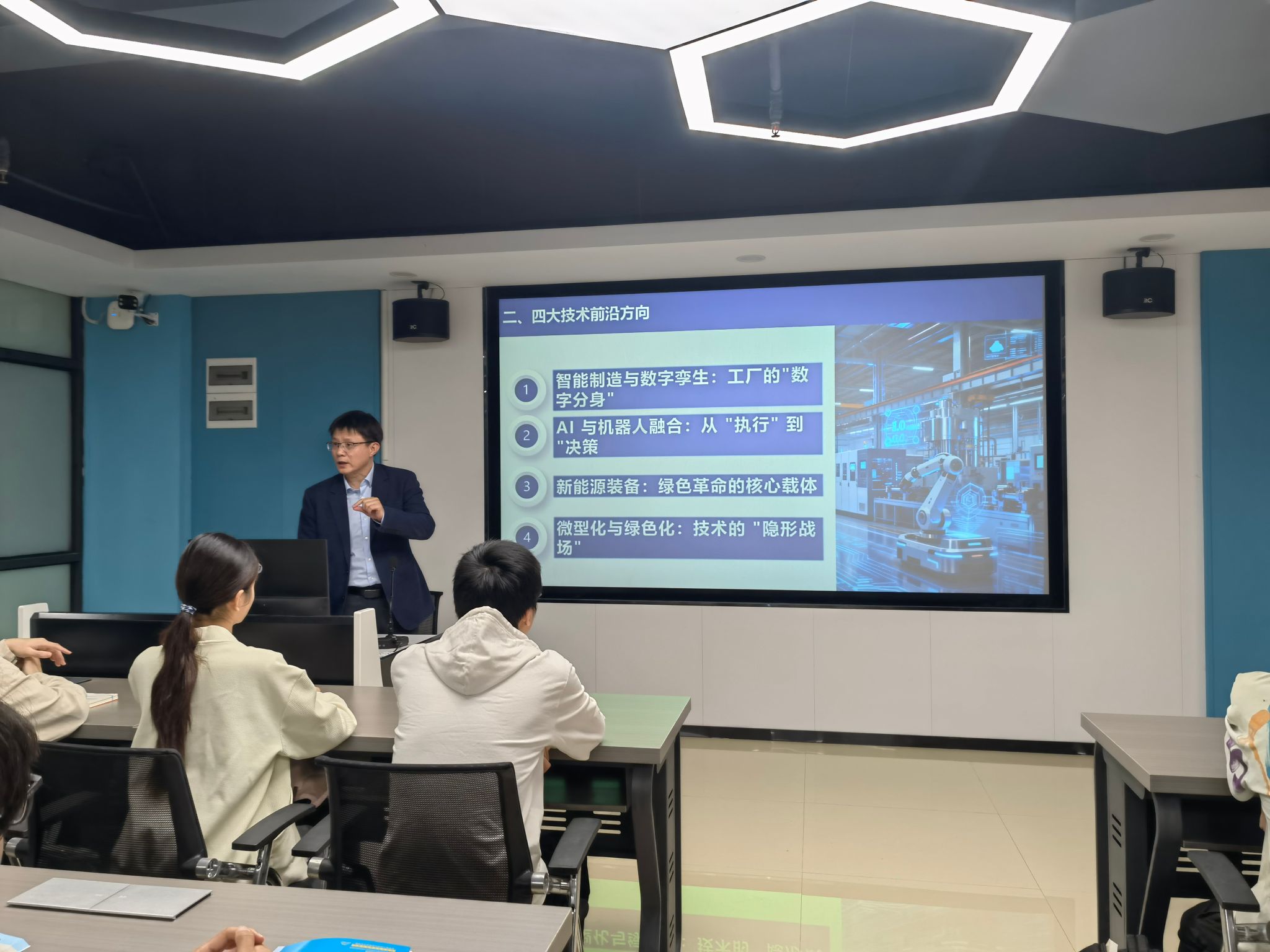 为落实立德树人根本任务,切实提高大学生思想政治工作的针对性和实效性,10月24日,校长刘林芽深入永利集团88304官网集团开展领导干部“三联系”活动,为械电子工程2302班学生讲授题为“以数字孪生技术赋能‘制造强国’---厚植科技报国的家国情怀”的思政课。