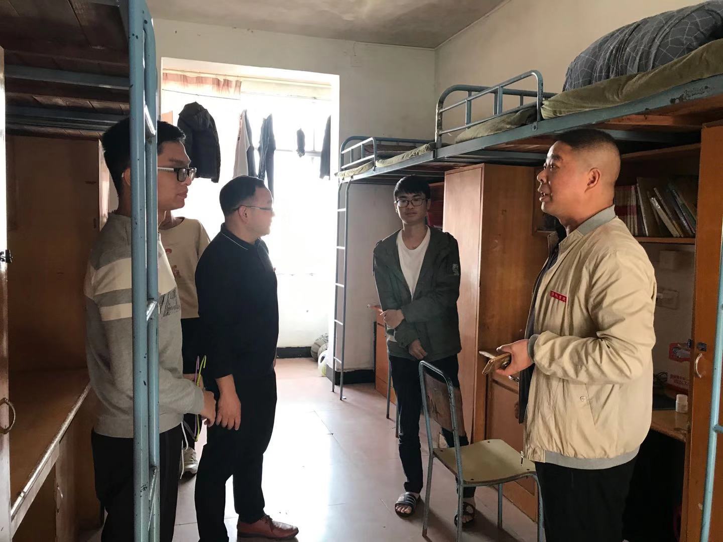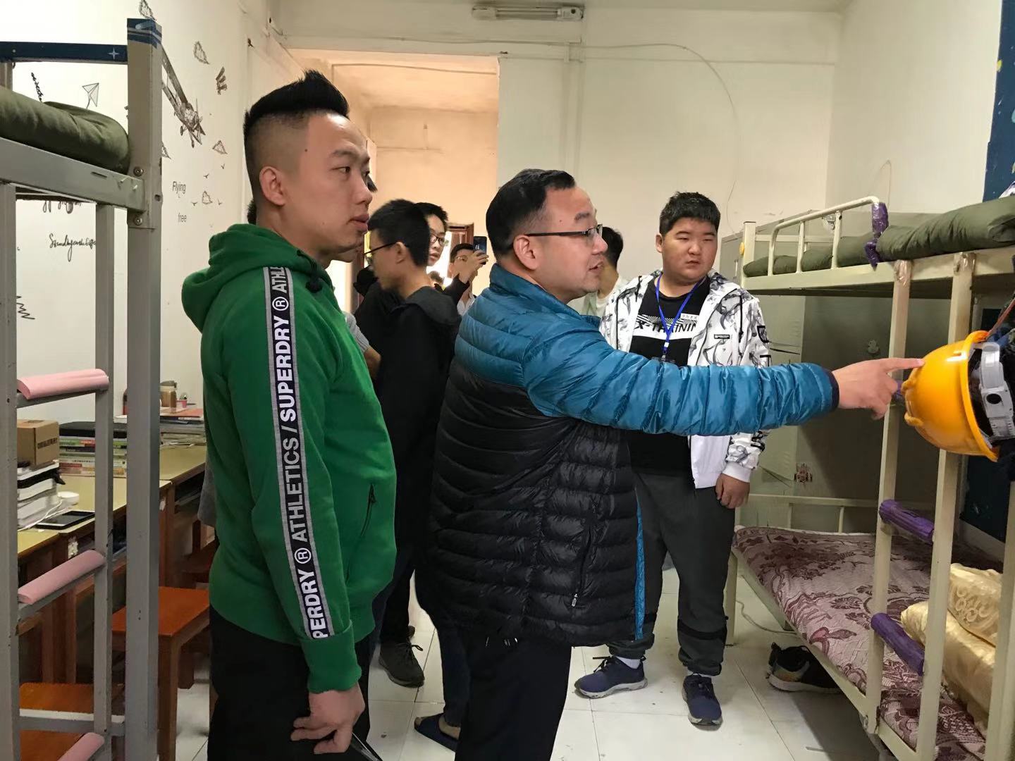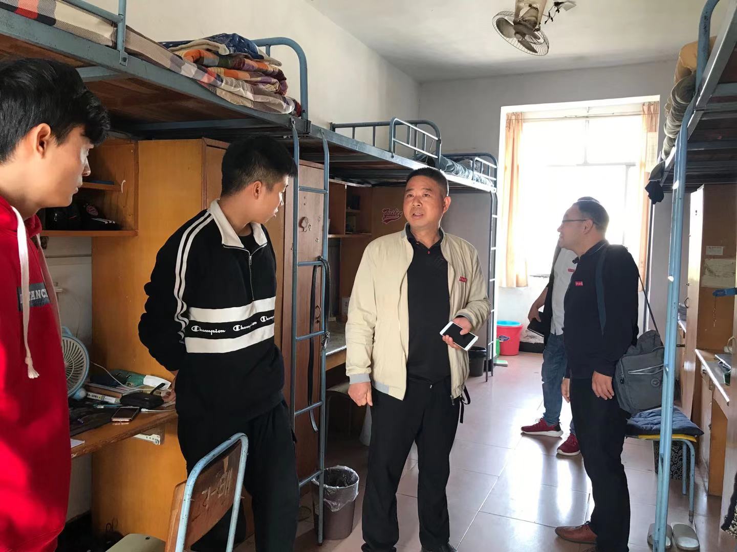 11月24日上午,永利集团88304官网集团党总支书记王斌、副书记王立平在学院辅导员和学生会干部的陪同下,到学生宿舍检查指导文明宿舍创建工作。