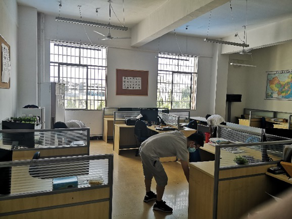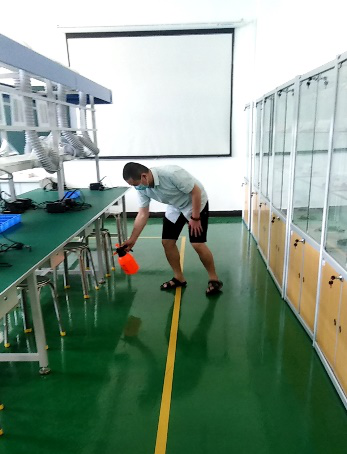 会后全体实验实训中心老师对各实验实训中心的所有房间进行了严格的消杀,采用地面喷洒84消毒液,桌面酒精涂擦的方式进行。学院领导和中心主任进行了安全隐患排查,对照学校要求详细记录检查情况。本次消杀后,学院将继续对实验实训室采取“一用一杀”、签到准入等管理措施,最大程度保障学生进入实验实训室的卫生安全。