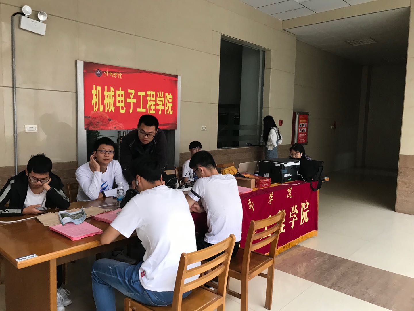 在学院领导、老师和学生会工作人员、学生志愿者的集体努力下,机电学院迎新工作圆满完成。