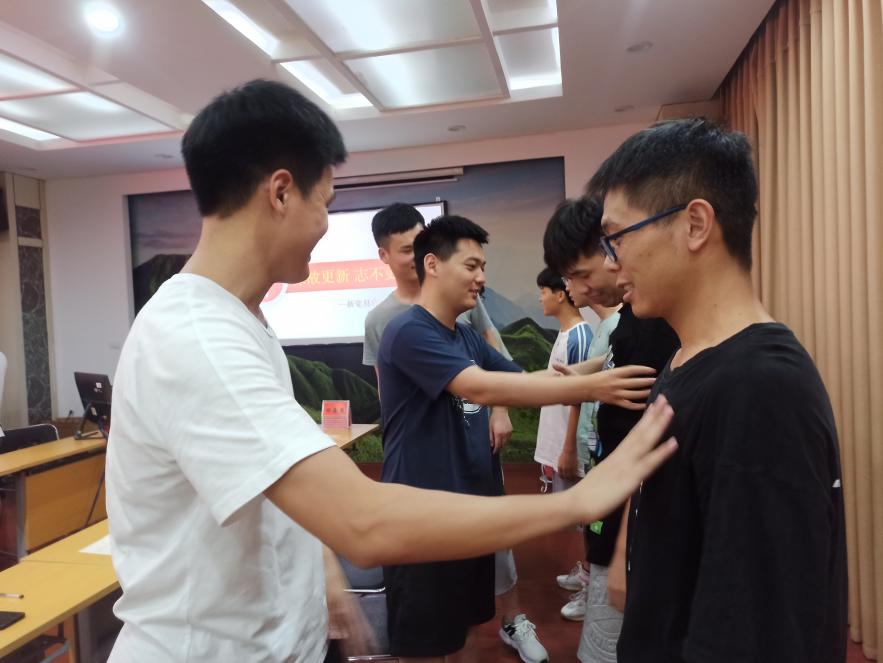 第二环节新党员宣誓。在本环节中,由毕业生党员为新发展党员代表佩戴党徽,支部书记占丽娜老师带领所有新党员进行了庄严的入党宣誓。宣誓之后,每一位毕业生党员为所有的新党员分享了自己的入党历程、本科学习阶段的经验与体会。希望把他们的优秀品质传承到新党员身上,也希望他们的经验教训可以帮助新党员更快的成长。最后由新党员代表支部为毕业生党员送出支部纪念礼物,并为他们送上祝福,愿他们无论何时,无论身在何处,都要感恩学校、学院及支部的培养与教育,永葆党员本色。