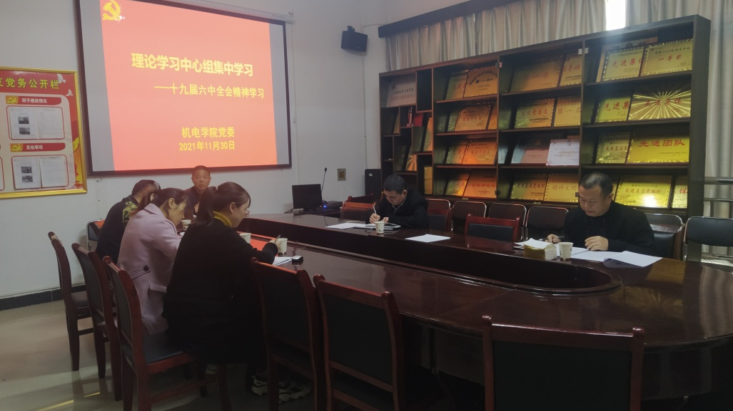 2021年11月30日下午,永利集团88304官网集团理论学习中心组在2216党员活动室召开集中理论学习会议,学习党的十九届六中全会精神,会议由王斌书记主持,参加会议的有机电学院理论学习中心组成员,列席旁听会议的还有信息与计算机学院的危远峰和刘燕同志。