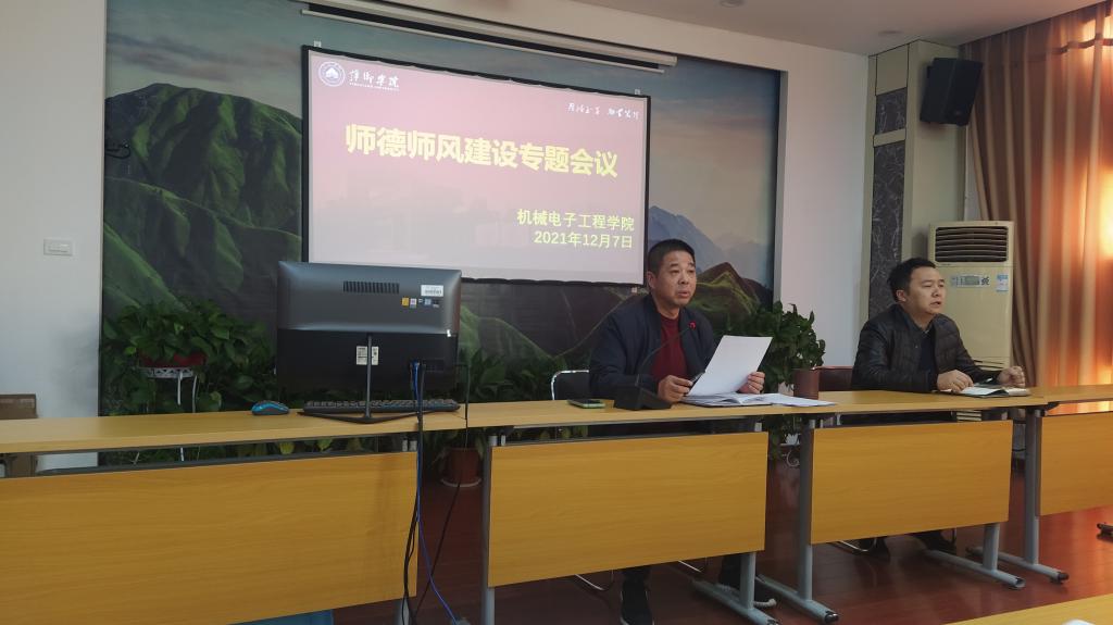 2021年12月7日下午,永利集团88304官网集团在鼎新楼2200会议室召开师德师风专项学习会,会议由学院党总支书记王斌主持,全体教职工参加。
