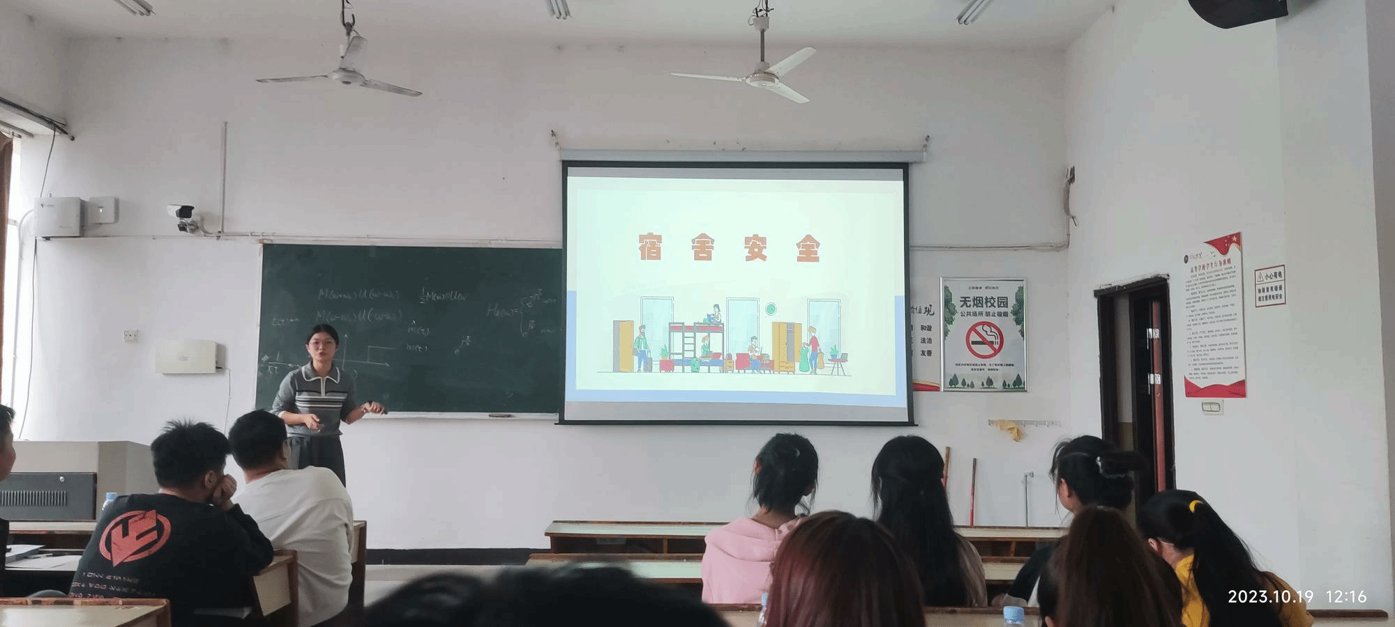 班会过程中,着重强调了宿舍安全的重要性,提醒学生宿舍安全这根弦应时刻绷紧不放松。要确保宿舍用电安全,防止宿舍火灾发生,同学们在宿舍内一定要禁止以下行为:不使用大功率电器、不乱扔烟头、不乱接电线、不躺在床上吸烟,不在蚊帐内点蜡烛看书、不焚烧杂物、不存放易燃易爆物品,要时刻将生命财产安全放在首位,主动、自觉提高安全意识。
