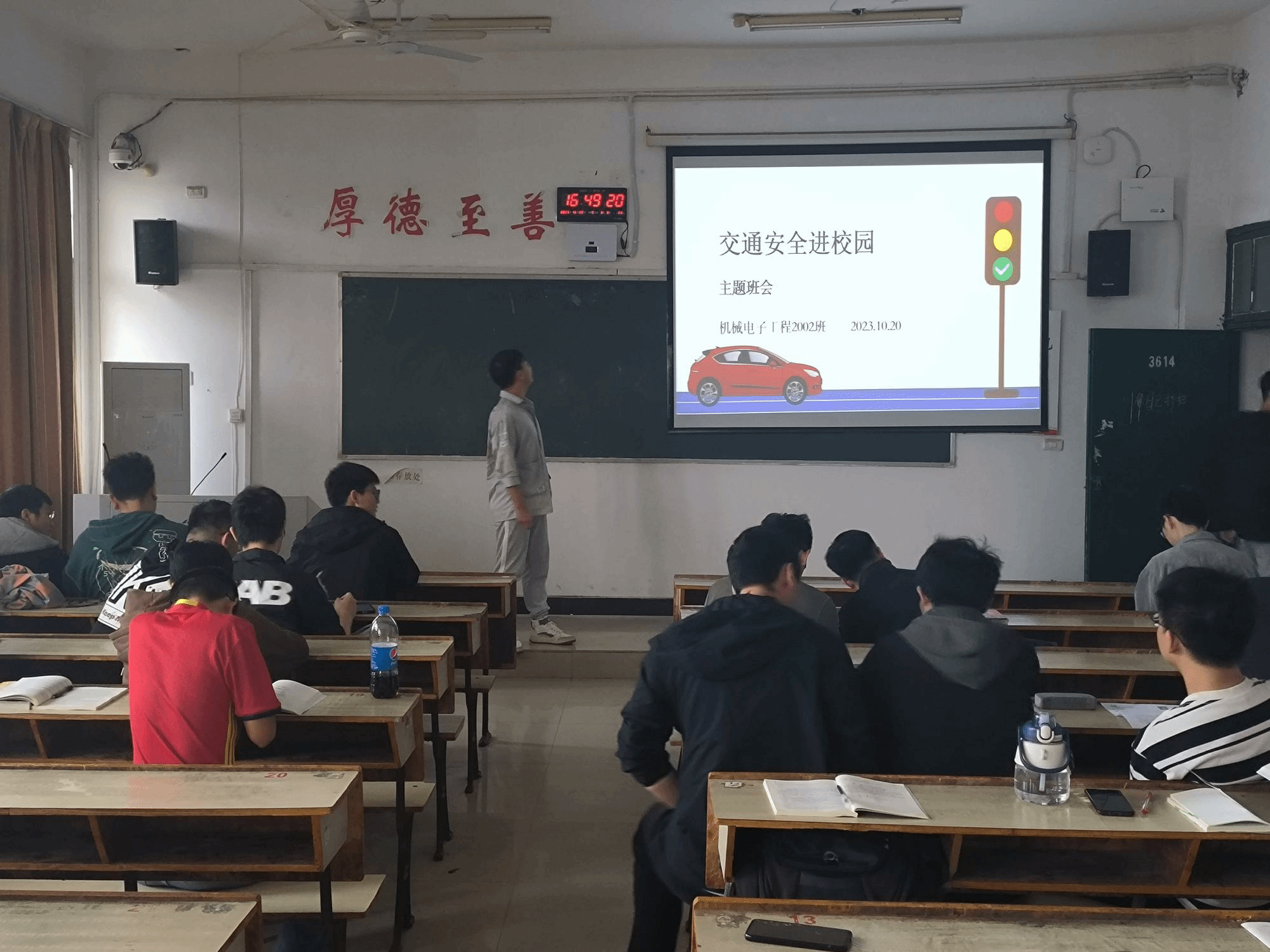 班会上,各班辅导员老师着重向学生介绍了交通安全知识的重要性,讲解了校园交通安全知识,并带领学生了解了校园交通安全有关规定和通知。班会过程中,分析了校园内交通事故发生的主要原因,事故处理的方式及如何进行有效预防。也提醒我们广大的在校大学生要自觉遵守交通法规,在人行道行走时应严格遵循置右原则,不得在道路上嬉戏、打闹,即使在没有人行道标志的地方行走也应先观察道路两边,避让过往车辆,确认安全后再通行。