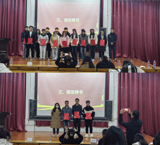 大会开始,学生会指导老师张陆为本次大会致开幕词,他充分肯定了上一学年学生会的工作,并希望新一届团学骨干能够团结进取,秉承一切为了同学,为了同学的一切的信念,在新起点上谋求发展。随后,罗钦艳老师为第三届学生委员会成员颁发聘书。